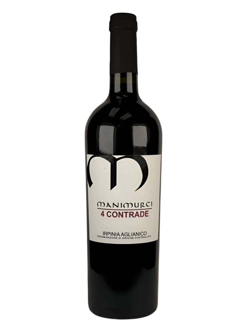 A rich and elegant Irpinia Aglianico from Manimurci’s single‑vineyard “4 Contrade”, offering deep cherry‑plum fruit, subtle spice and refined tannins—ideal for both everyday dining and aging.